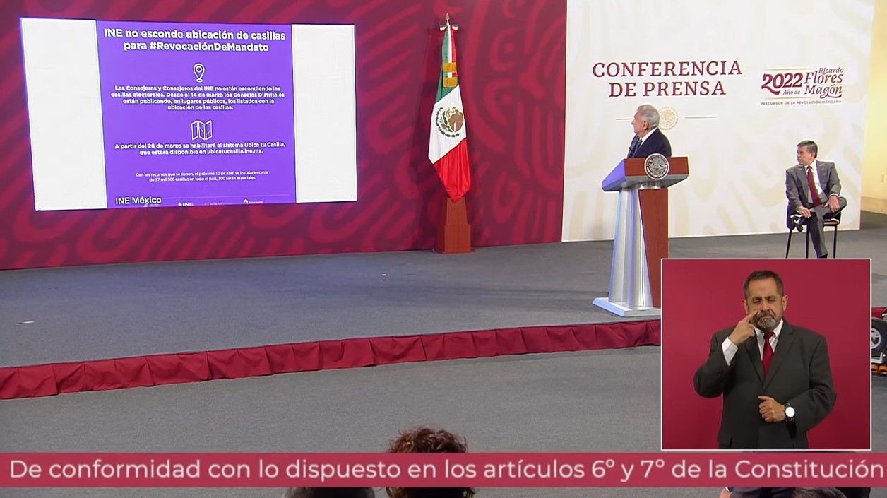También se refirió a la resolución del Tribunal Electoral del Poder Judicial, que frenaría la promoción de la revocación de mandato entre los funcionarios y legisladores, aprobada hace dos semanas en el Congreso: “La Cámara de Diputados y la Cámara de Senadores aprobaron que puedan hablar del tema de qué va a haber esta consulta el 10 de abril, el tribunal electoral aprobó una prohibición pues hay que ver qué efectos tiene y qué es lo que prevalece, si es la autorización del congreso o es el tribunal electoral. La verdad es que todos saben que va a haber una consulta, o la mayoría tiene que ver con la constitución y con la democracia”.