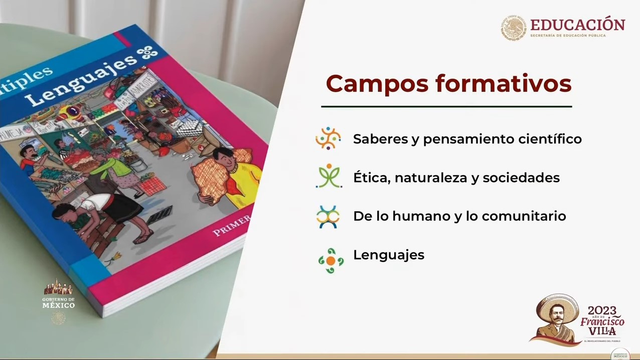 Ramírez explicó que los campos formativos de la Nueva Escuela Mexicana son: Saberes y pensamiento científico. Ética, naturaleza y sociedades. De lo humano y lo comunitario. Y Lenguajes. Además, detalló los ejes articulados que incluyen: inclusión, pensamiento crítico e igualdad de género.