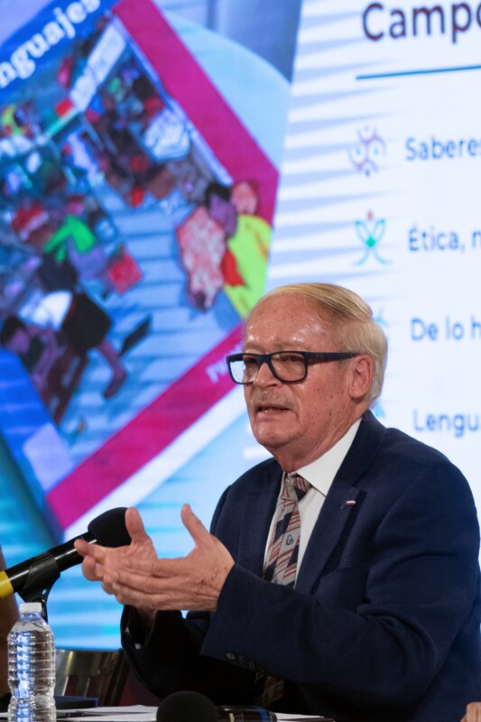 Tras todas esas revisiones, Marx Arriaga explicó que cuando se tuvo la nueva propuesta de los libros de texto salieron a 12 estados, principalmente en el norte del país, para discutirlos y se terminó con tutorías de acompañamiento.