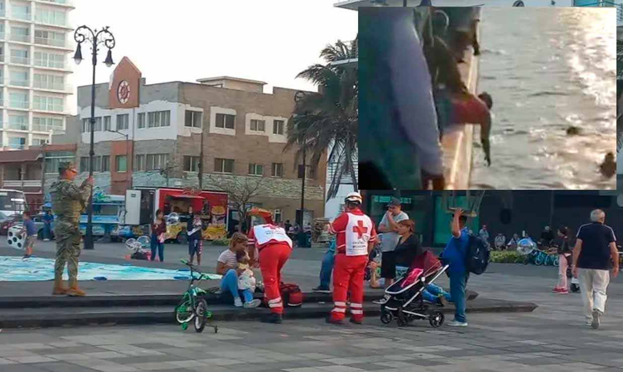 Los padres de un bebé de apenas un año y cinco meses vivieron momentos de angustia y desesperación cuando la carreola donde se hallaba el menor cayó al mar en el malecón de Veracruz.