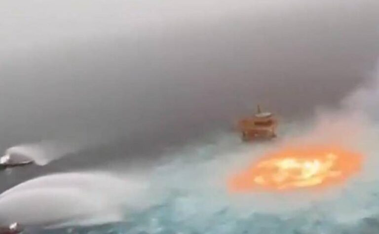 «Controla Pemex emanación de gas y fuego en ductos submarino en cercanías de la plataforma satélite KU-C en la sonda de Campeche.