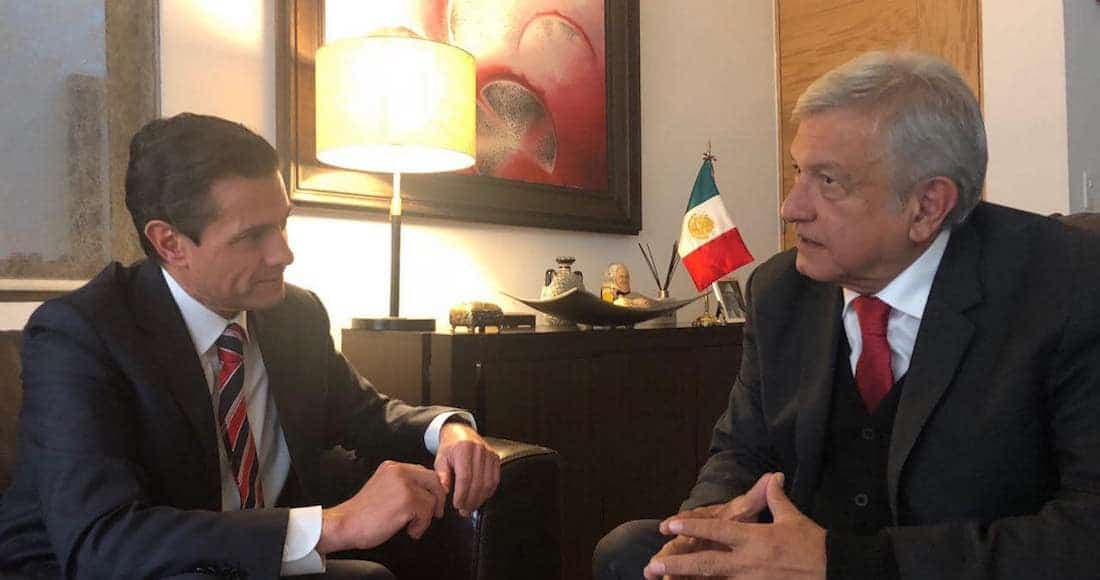Ciudad de México.- Andrés Manuel López Obrador se reunió con Enrique Peña Nieto ayer por la tarde, a nueve días del cambio de sexenio. Comieron juntos, sin Angélica ‘La Gaviota’ Rivera, e hijos. Fue poco después de que estuvo con la periodista Carmen Aristegui. Allí, en vivo, en su programa, se comprometió a investigarlo a él, el mandatario saliente, y a Carlos Salinas, Ernesto Zedillo, Vicente Fox y Felipe Calderón.