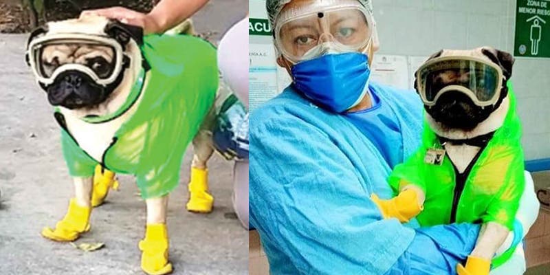 Perrito da terapia a personal médico que atiende la pandemia por covid-19.- Las fotografías del pequeño can ya se han vuelto virales en redes sociales.