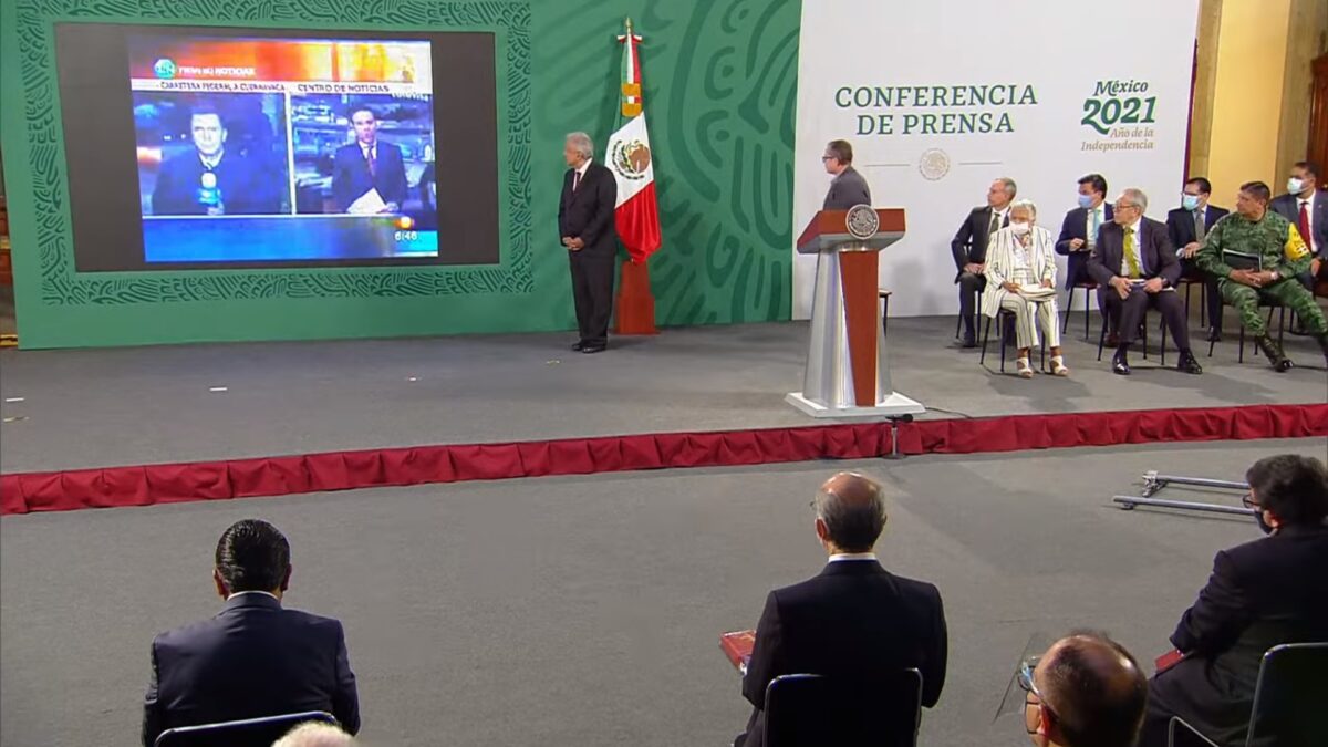 Presentación en la mañanera del montaje llevado a cabo en el noticiero de Televisa Primero Noticias, conducido por Carlos Loret de Mola, quien desistió de parar el engaño, pese a ser alertado.