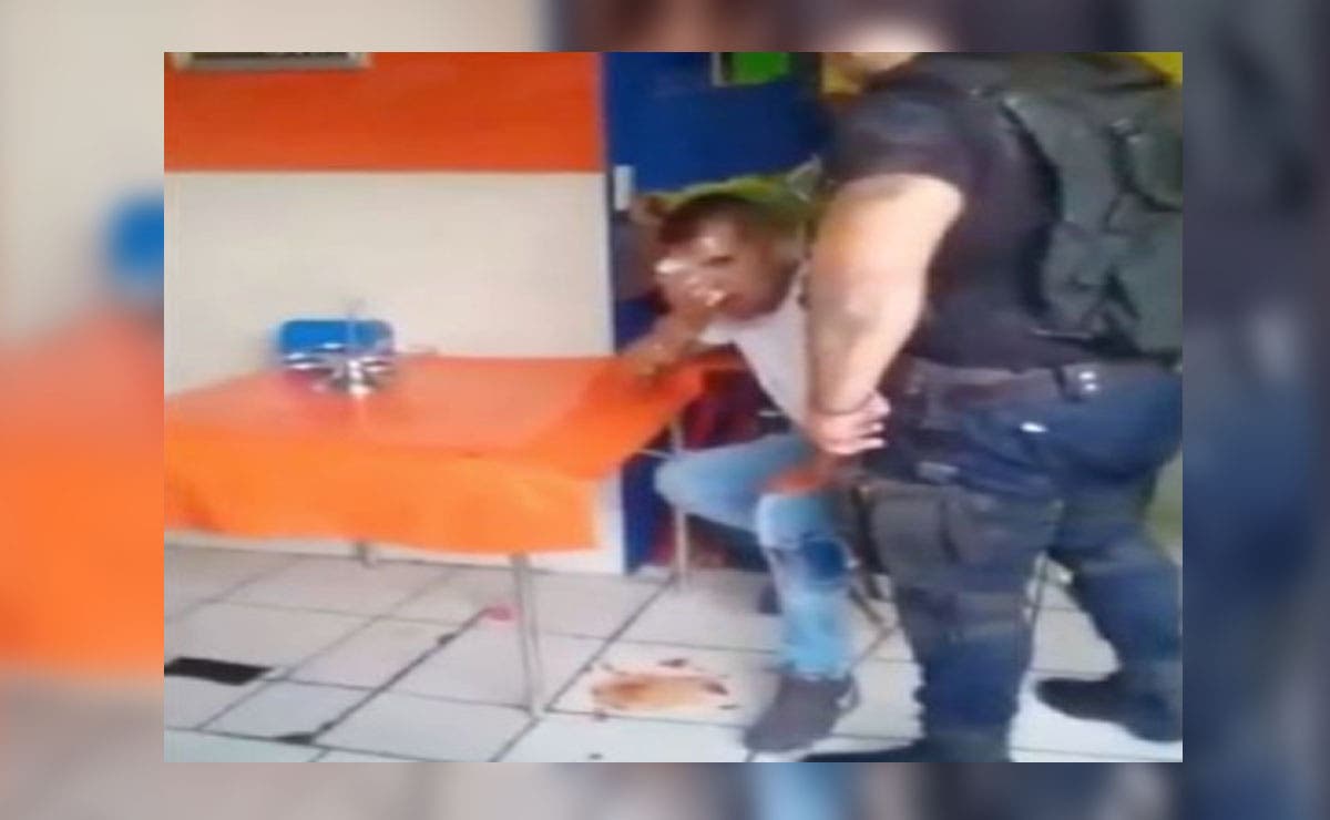 En las redes sociales, circula el video donde se observa al agredido sentado junto a la mesa de un establecimiento, los policías se acercan y él se limpia la sangre que le brota, mientras las personas presentes reclaman a los uniformados por haberlo golpeado.