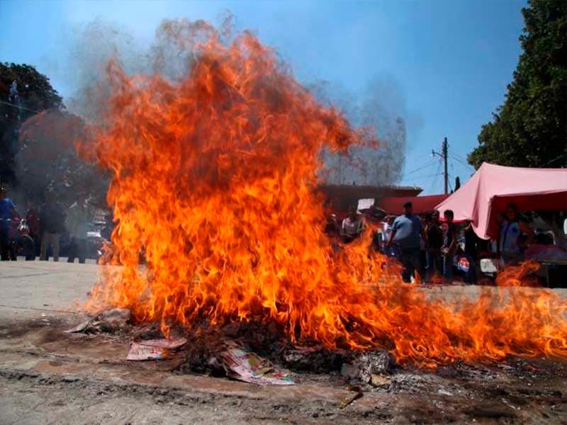 Pobladores de Amilcingo, Morelos, quemaron boletas de la consulta ciudadana que se realiza por la Termoeléctrica, en protesta por la muerte del activista Samir Flores.