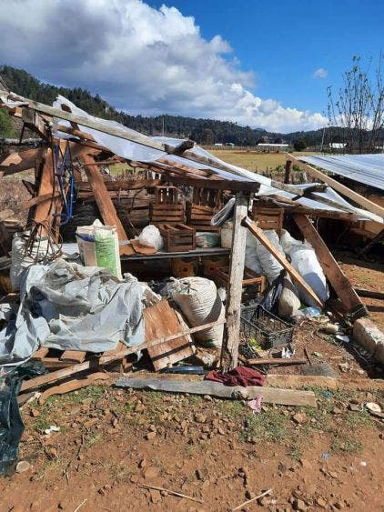 Por lo que el líder evangélico explicó que son dos familias de indígenas tzotziles los afectados con la destrucción de las cinco casas.