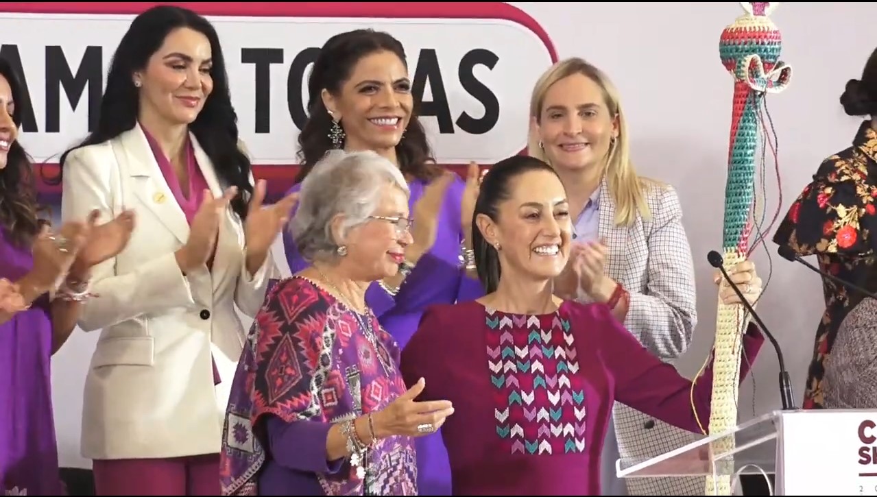 Sheinbaum estuvo acompañada por la secretaria general de Morena, Citlalli Hernández, las senadoras Olga Sánchez Cordero, Ifigenia Martínez y Susana Haro, así como Rosaura Ruiz, nombrada secretaria de Ciencia y Tecnología.