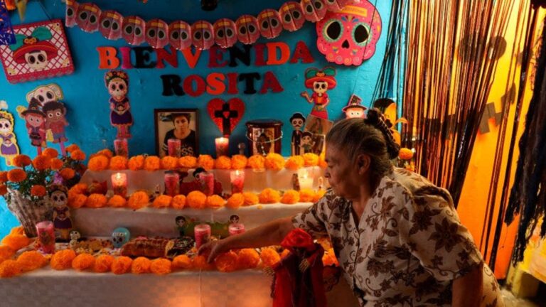 Doña Norberta levanta un altar de tres niveles que ocupa buena parte del salón de la humilde casa. A la foto de su hija la acompañan flores naranja de cempasúchil, pan, velas y calaveras de colores, mientras unas letras en la pared anuncian que este año se llevó a un nuevo integrante de la familia: “Bienvenida Rosita”, dice el altar.
