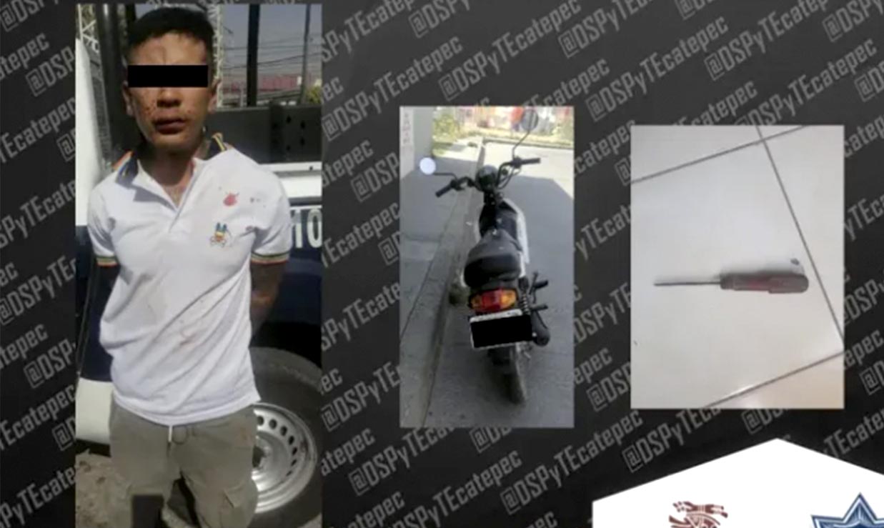 Los hechos ocurrieron en el municipio de Ecatepec cuando un hombre con navaja en mano presuntamente despojó de su unidad a una joven mujer, quien con gritos solicitó el apoyo de los habitantes del lugar, quienes tras perseguir al sujeto, terminaron sometiéndolo.