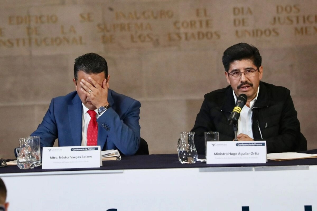El ministro Hugo Aguilar Ortiz, junto con otros cinco ministros y el presidente del Órgano de Administración Judicial (OAJ), Néstor Vargas, ofrecieron una conferencia de prensa en la sede de la SCJN para sostener que fue justificada la compra de las camionetas, como parte de la renovación de 571 unidades del parque vehicular del Poder Judicial de la Federación (PJF).