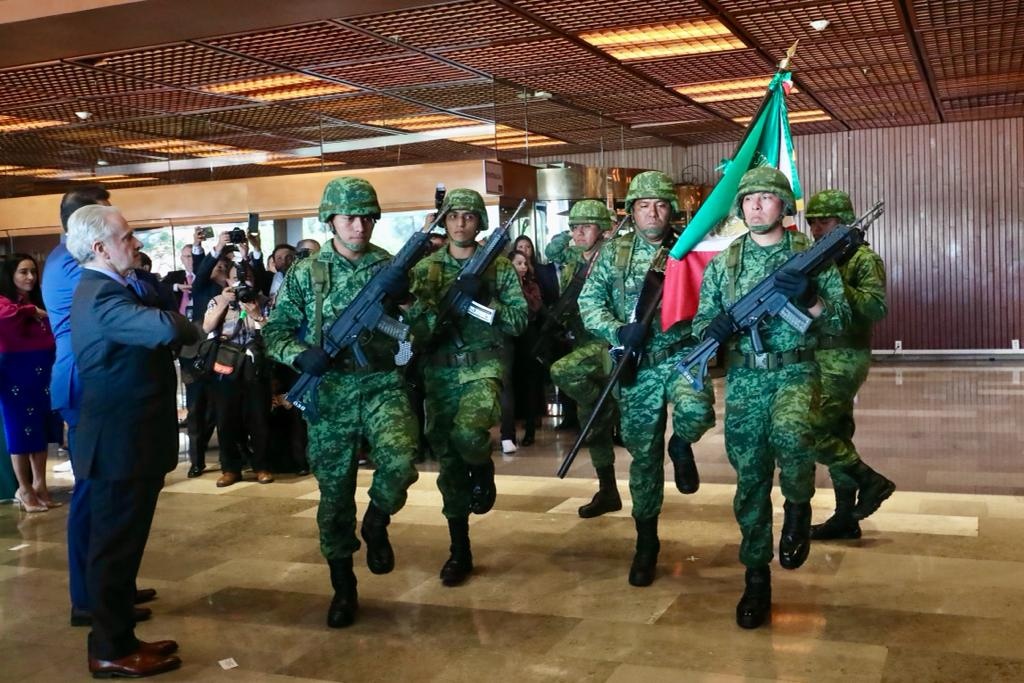“Cabe precisar que, la Bandera de Guerra de las Unidades del Ejército y Fuerza Aérea Mexicanos, es custodiada permanentemente por personal militar armado, como símbolo máximo de respeto e identidad nacional”, detalló la Sedena.