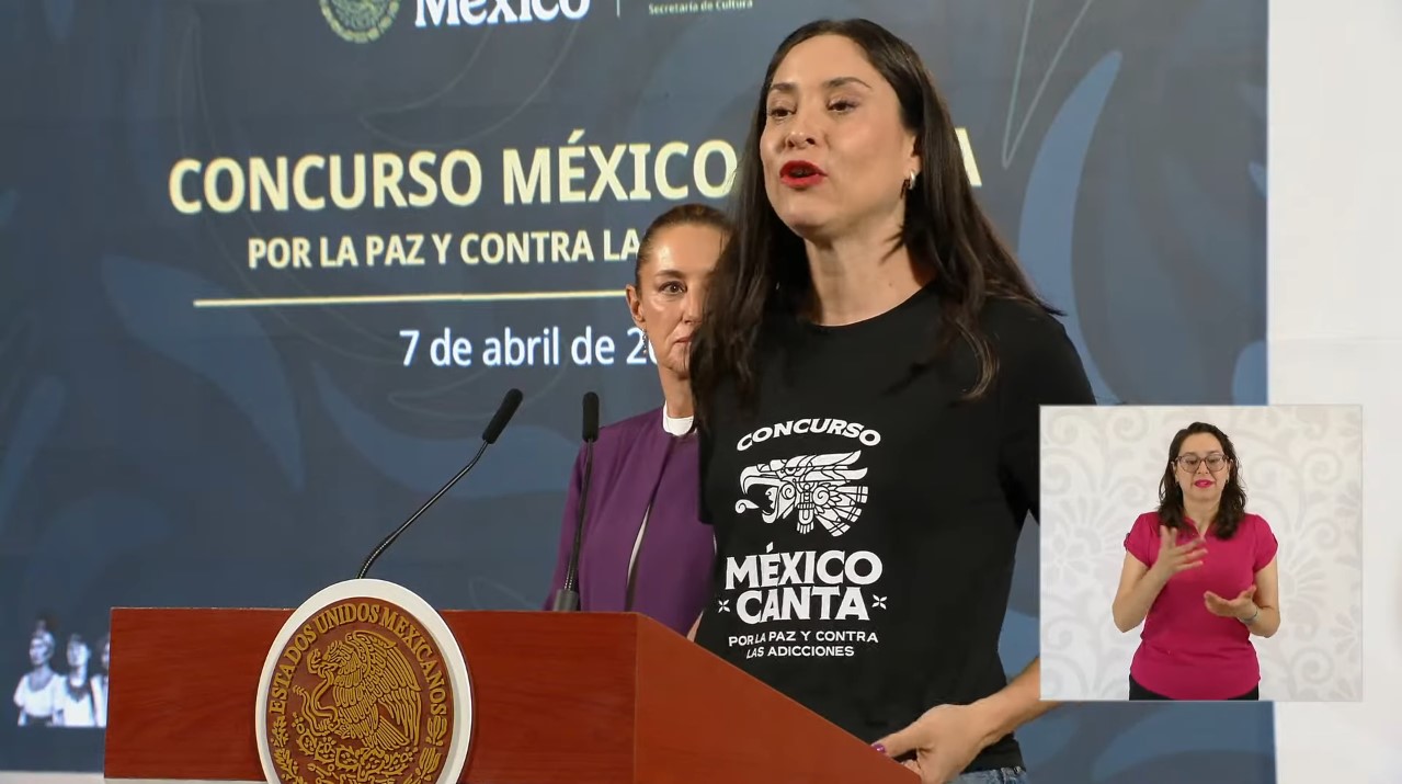 La presidenta Claudia Sheinbaum presentó el concurso binacional “México Canta por la Paz y Contra las Adicciones” dirigido a jóvenes autores, cantautores e intérpretes, de 18 a 34 años, de cualquier parte de México y Estados Unidos con la intención de promover la música sin mensajes de violencia.