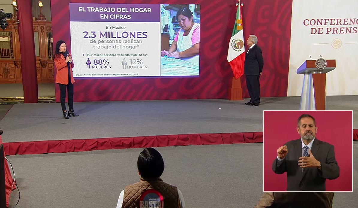 Luisa María Alcalde refirió que en México existen 2.3 millones de personas que realizan trabajo del hogar, 88% de las cuales son mujeres y tan solo 12% son hombres.