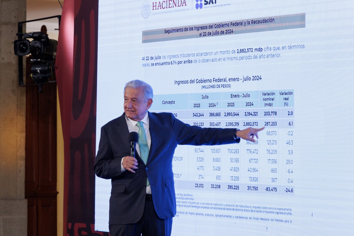 “Nada más, de participaciones de julio, el año pasado, 230 mil… 320 mil; julio de este año, 353 mil; de enero a julio dos billones 595 mil, el año pasado, dos billones 595; este año, el mismo periodo, dos billones 882 mil.