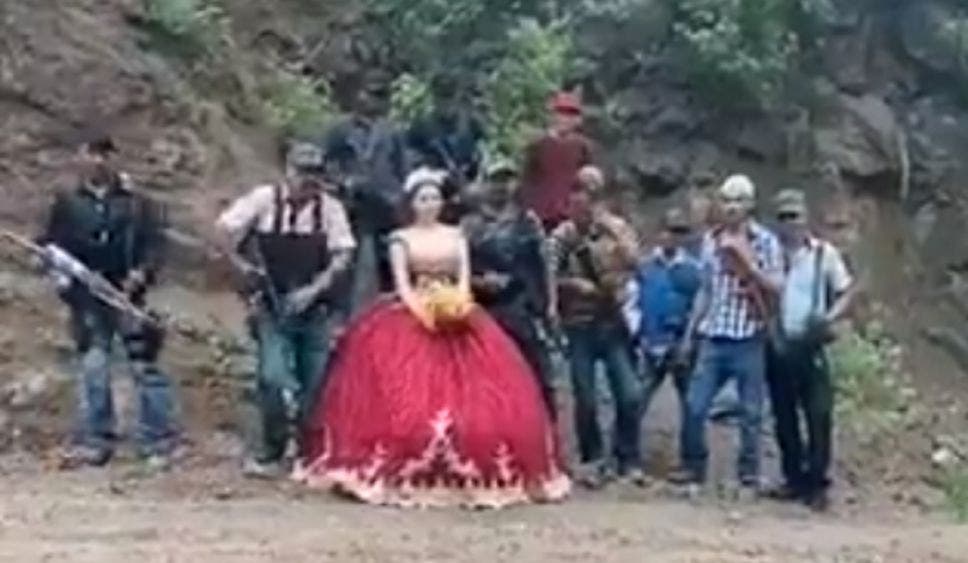 La joven, con vestido rojo y ramo amarillo, esperó a que los 10 sicarios se acomodaran y mostraran orgullosos sus armas para sonreír ante la cámara. En consecuencia, los usuarios han comentado que la quinceañera podría ser una víctima más de la delincuencia organizada.