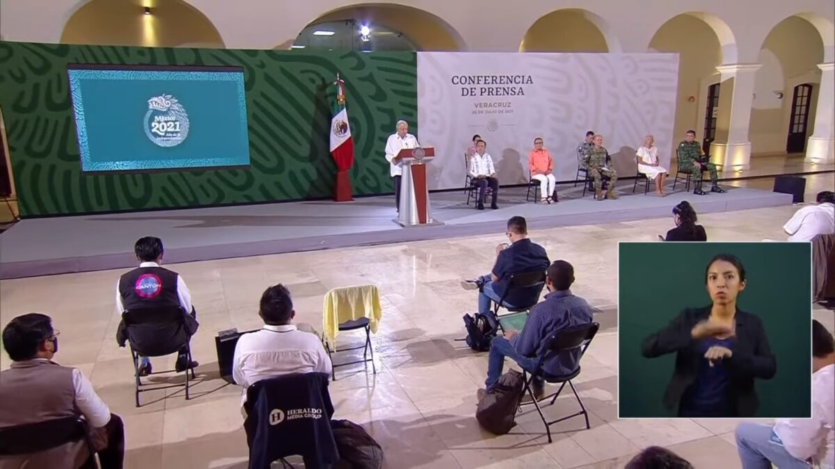En su conferencia de prensa matutina, en el patio del Museo Naval en el puerto jarocho, el mandatario amplió su explicación en torno a la situación de la tercera ola.