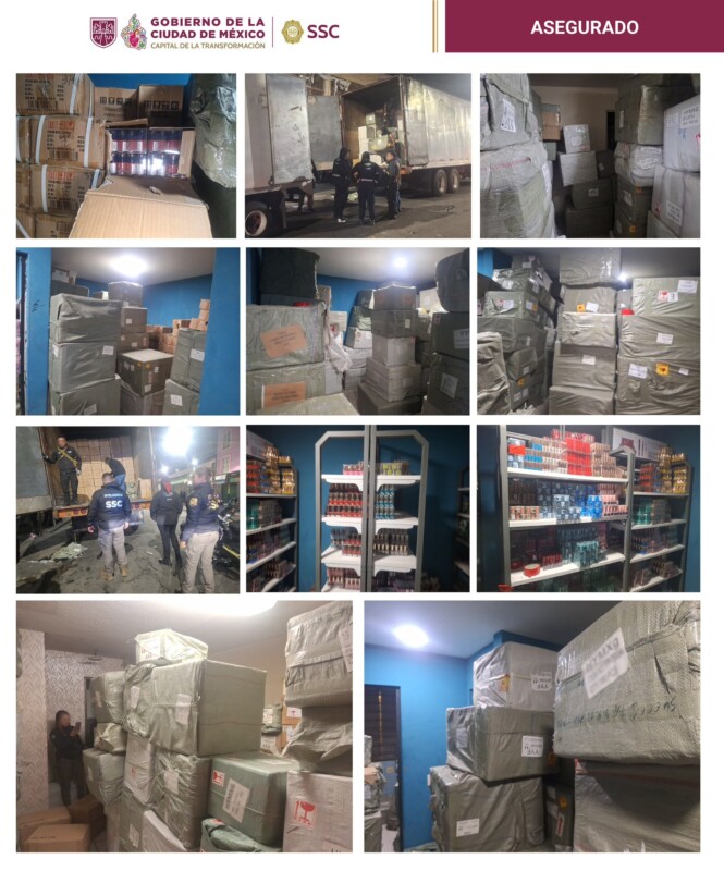 Un operativo conjunto encabezado por autoridades de la CDMX derivó en el aseguramiento de una gran cantidad de mercancía extranjera sin documentación legal principalmente perfumes y productos cosméticos.