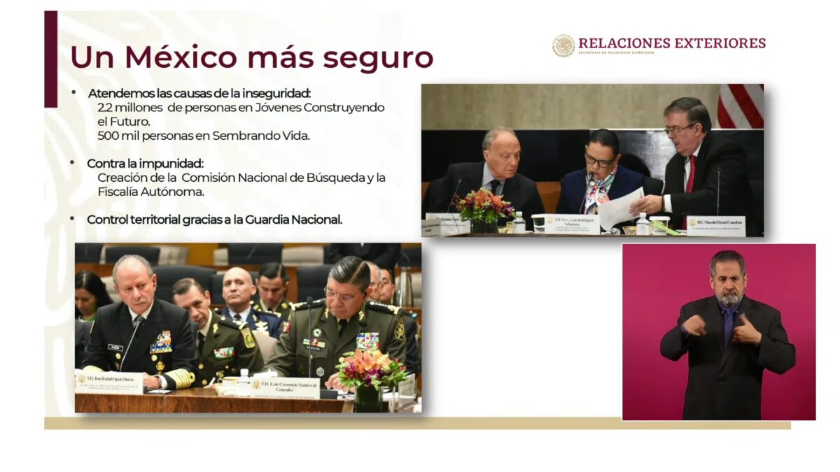 Además, el canciller mexicano detalló que hay más de 20 medidas para aumentar confiscación de armas y reducir aún más su tráfico ilegal. “Se creará un grupo de trabajo con este objetivo”, dijo.