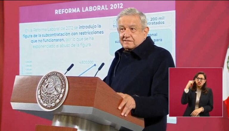 En su conferencia de esta mañana, informó que revisarán la propuesta con los empresarios: “Será para explicarles sobre esta iniciativa que ya se envió a la Cámara de Diputados. El propósito es que no se abuse de la subcontratación, que se especifique en qué condiciones se puede llevar a cabo”.