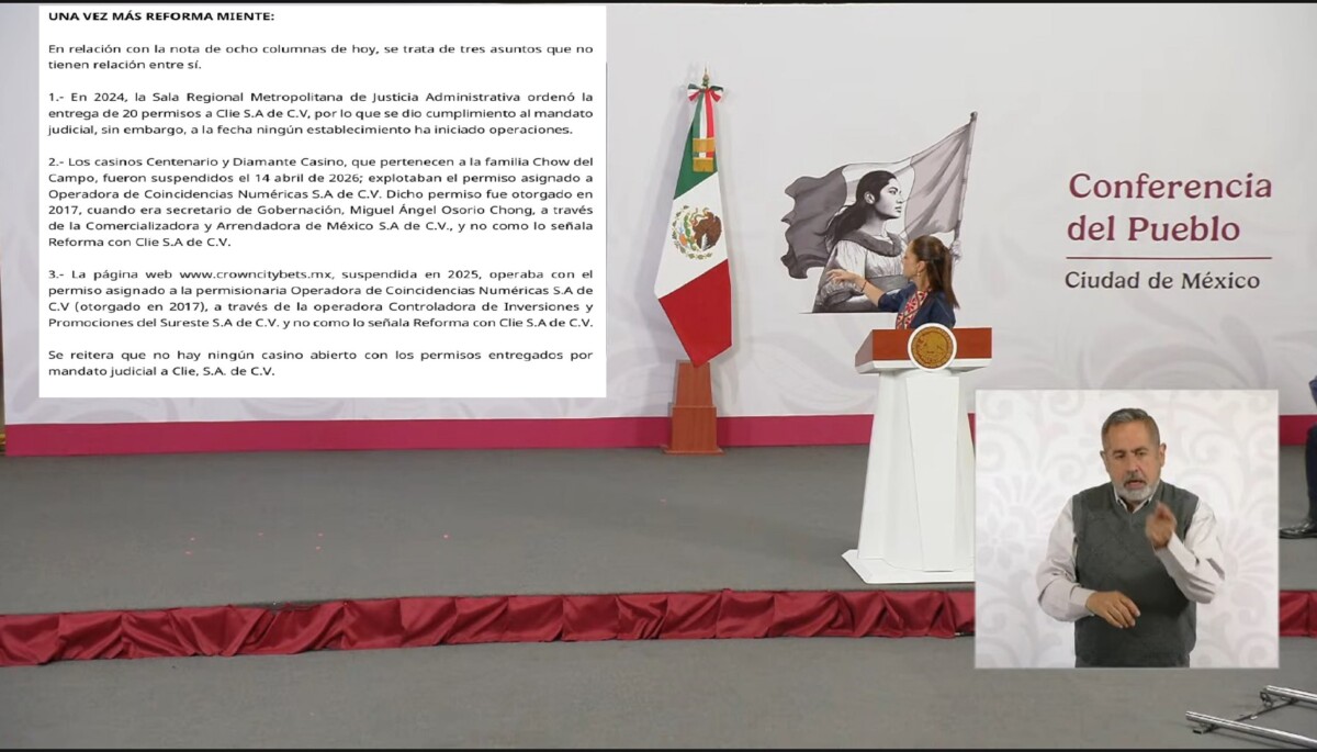 Segob reiteró que no existe ningún casino en funcionamiento que opere con los permisos entregados por mandato judicial a Clie S.A. de C.V., y sostuvo que la información difundida por Reforma carece de precisión al vincular estos casos.