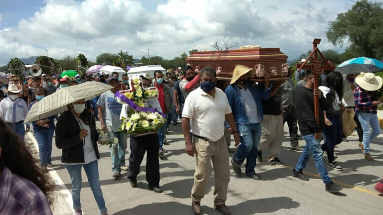 Luego de la misa, los familiares de Elena Sánchez llevaron cargando en los hombros los tres féretros, y caminando en procesión por las calles del poblado los llevaron al panteón, ubicado en la entrada de la localidad donde les dieron sepultura.