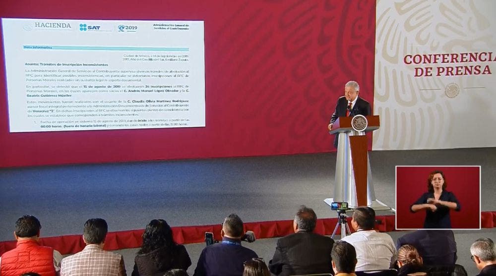 El registro se hizo el 11 de agosto de 2019 en Boca del Río, Veracruz, en oficinas del SAT. “Me ponen como socio, a mí y a mi esposa. Advierto a los mexicanos que no soy empresario, respeto mucho a los que se dedican a esa actividad, soy servidor público. No tengo empresas, propiedades, apenas tengo la cuenta en donde me depositan mi sueldo.
