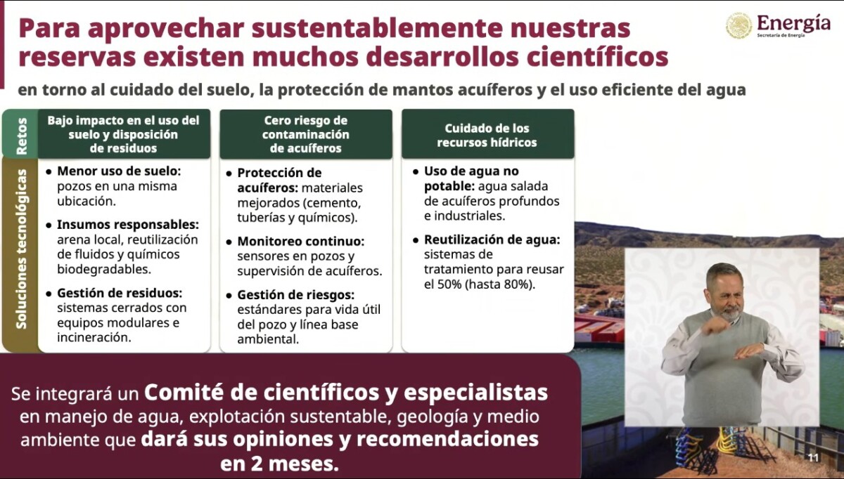 Por ello, el Gobierno Federal pretende explotar fuentes “no convencionales” del combustible, esto derivado del dictamen un comité científico, que será definido próximamente, que indique que opciones tienen menos impacto ambiental.