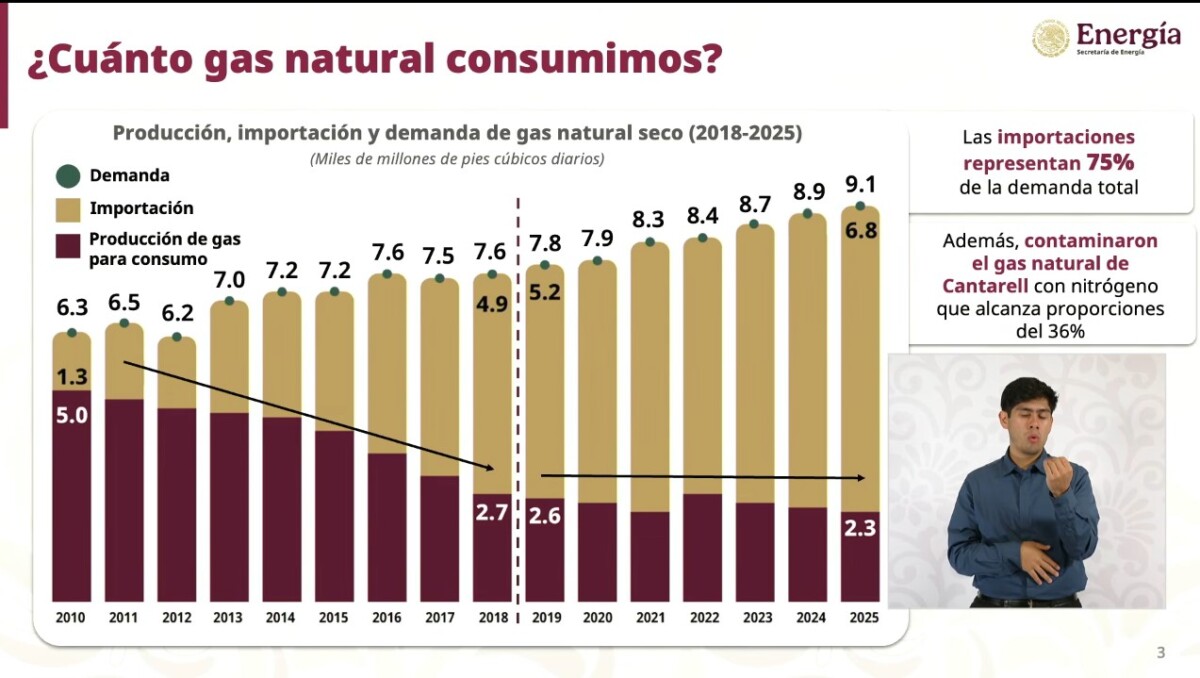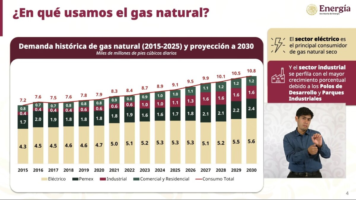 En tanto, el titular de Petróleos Mexicanos, Víctor Rodríguez Padilla, informó que de 2,300 MMpcd en 2025, México proyecta elevar su producción de gas natural a más de 5,800 MMpcd para 2030.