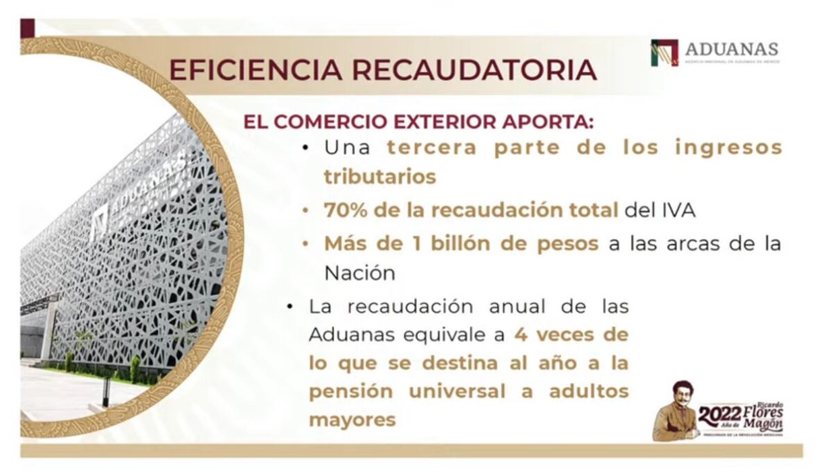 En su informe, Duarte dijo que en el primer año de esta administración se obtuvieron por las aduanas 949 mil millones de pesos, por lo que en esta administración se ha incrementado en un 16 por ciento a pesar de la contracción económica que se enfrentó a causa de la pandemia entre 2020 y 2021.