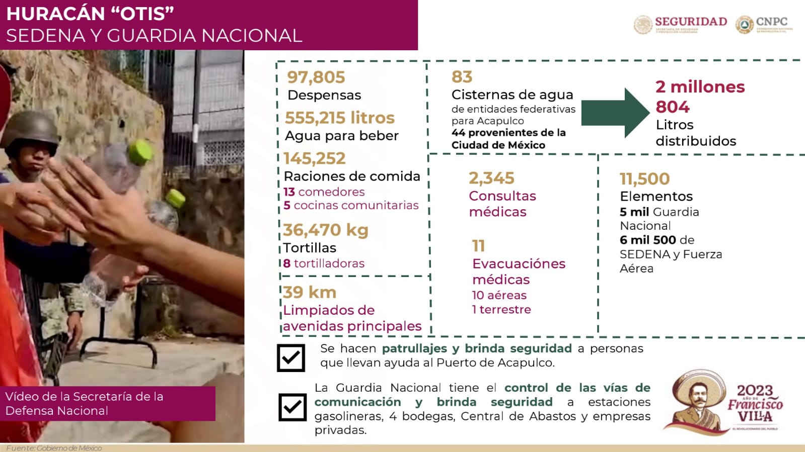 A través del Plan DN-III-E y del Plan GN-A, la Secretaría de la Defensa Nacional reporta: