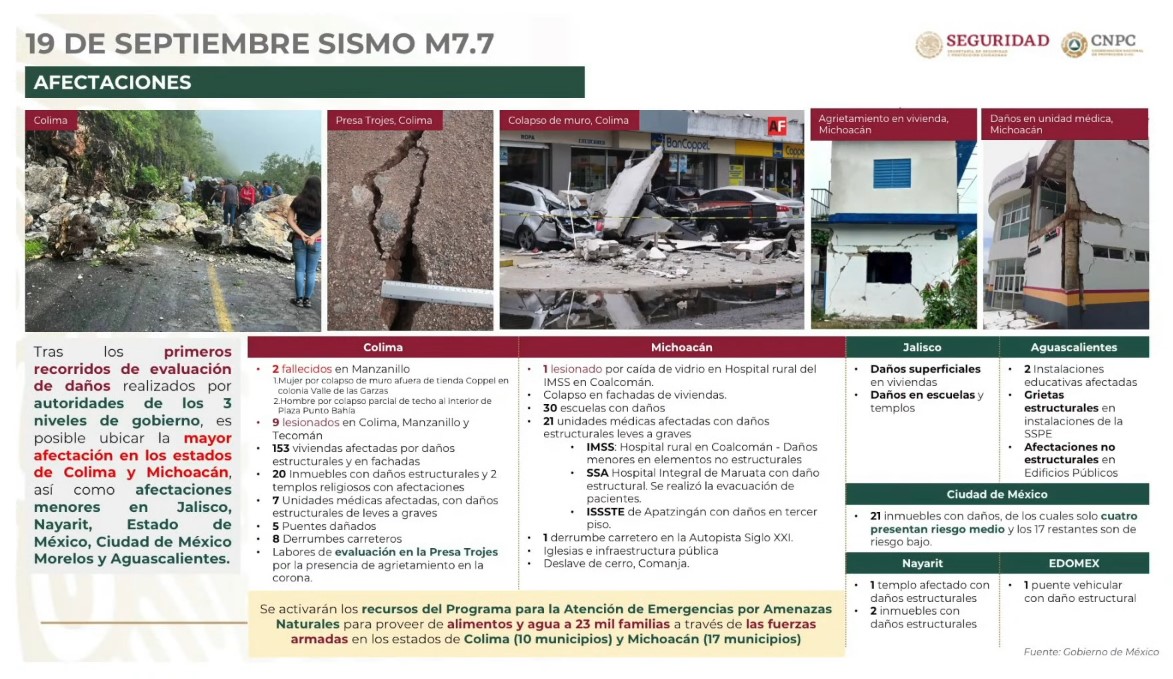 Horas después del terremoto se habían reportado al menos dos muertos en Colima. Sí hubo daños estructurales en diversos edificios, incluidos hospitales, en dos estados de la costa del Pacífico que todavía se evaluaban.