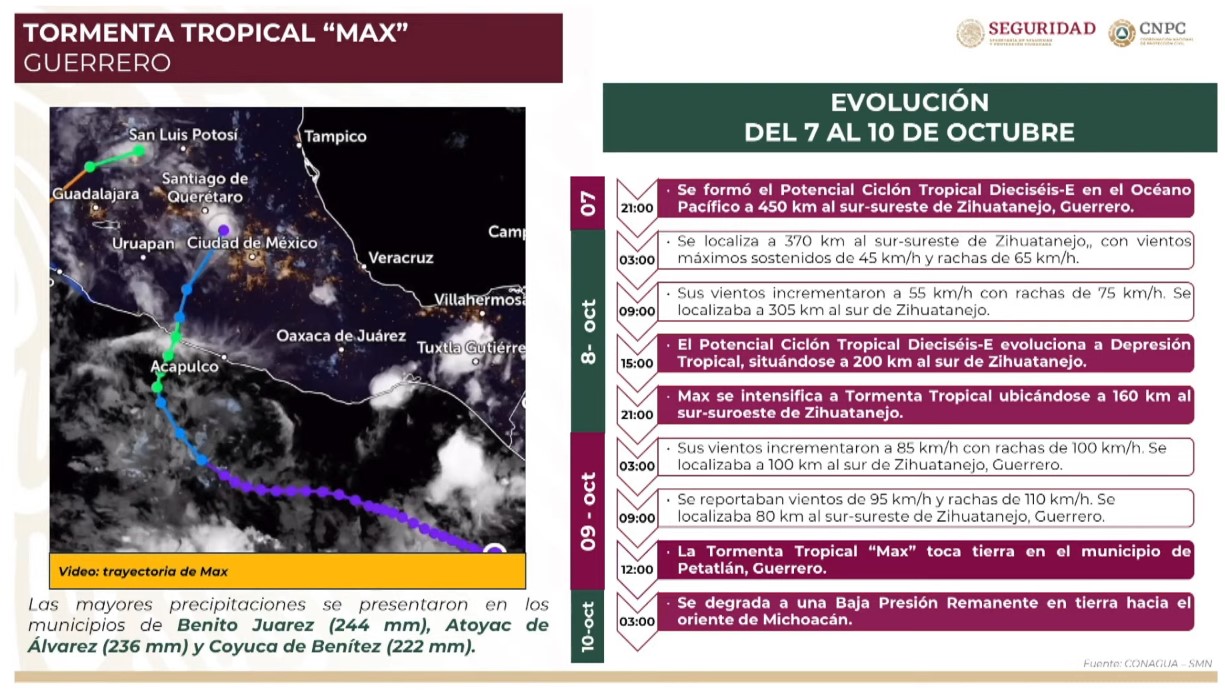 En términos generales, la Secretaría de la Defensa Nacional, que desplegó al menos a 3 mil oficiales para apoyar a la población más unos mil más de la Guardia Nacional, reportó casi a las 10 de la noche que no tenía reportes de gravedad ni de afectación a la vida de la población.