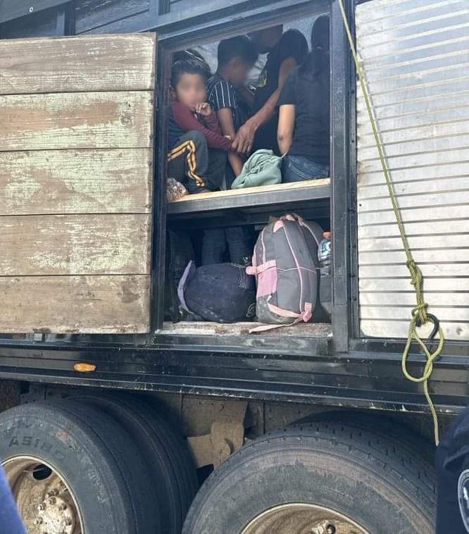Elementos del Instituto Nacional de Migración (INM), con apoyo de la Policía Estatal de Veracruz, ubicaron un camión de carga que transportaba de manera ilegal a 130 migrantes extranjeros, todos originarios de Guatemala.