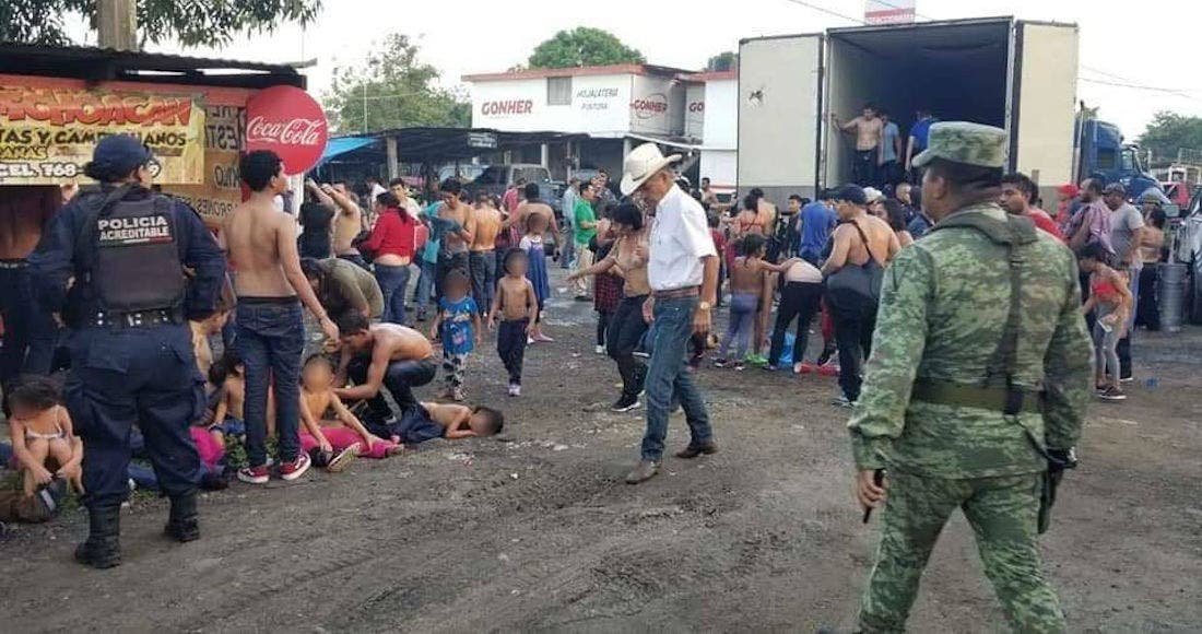 Luego de abrir la caja del tráiler, las personas que viajaban en su interior fueron desalojadas y auxiliadas por elementos de seguridad, pues algunos de ellos presentaban lesiones leves o deshidratación.