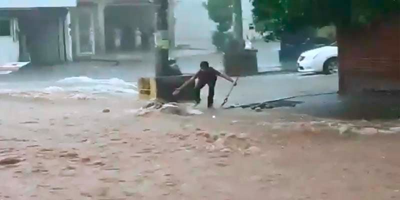 Un niño fue arrastrado por la corriente que se generó por las inundaciones, el menor pedía ayuda por lo que un joven intentó ayudarlo sin embargo no lo consiguió.