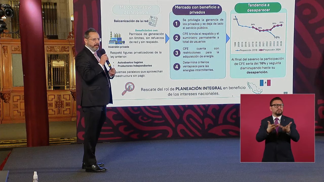 Se dijo que si la tendencia para destruir a la paraestatal hubiesen continuado, la participación en la generación sería de apenas 16 por ciento, e incluso se habría llegado a una participación nula y la CFE se hubiese convertido únicamente los transportistas de toda la energía que se inyectaría por la iniciativa privada.