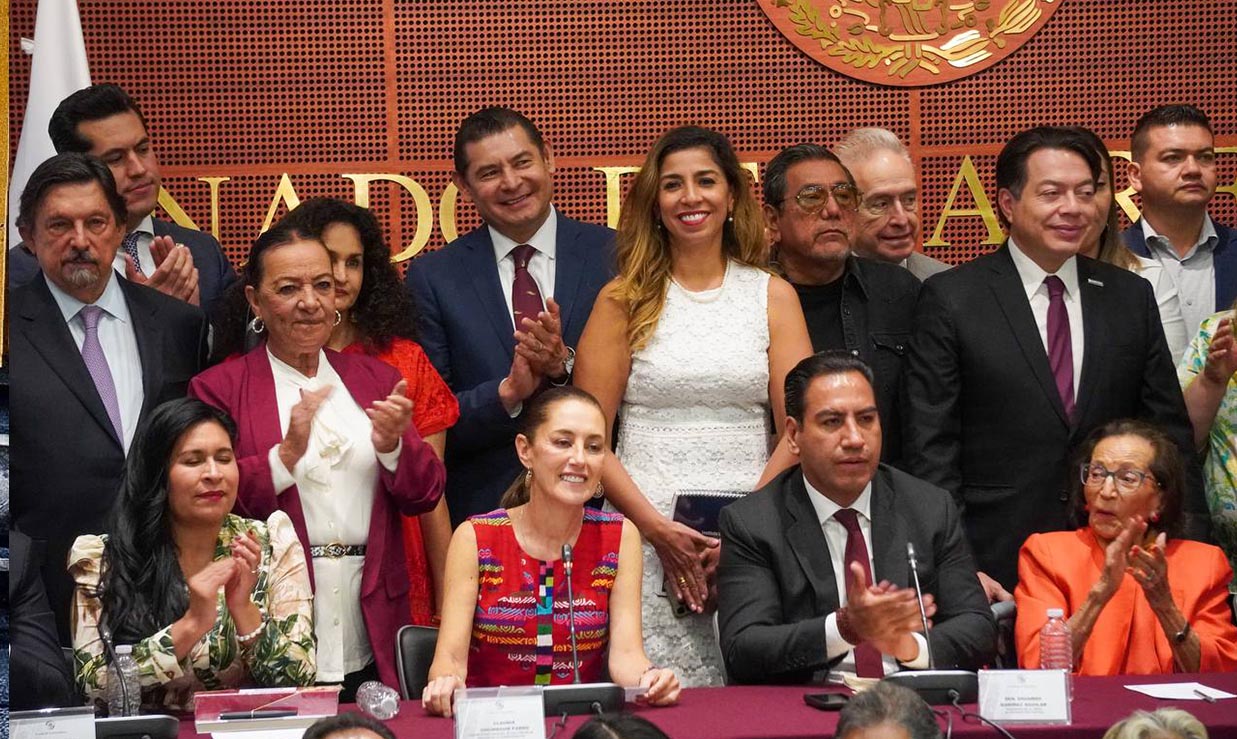 La tarde de este miércoles la ex jefa de gobierno capitalina y Coordinadora de los Comités de Defensa de la Cuarta Transformación, Claudia Sheinbaum Pardo, entabló una reunión de trabajo en el Senado de la República, donde fue arropada por la bancada morenista.