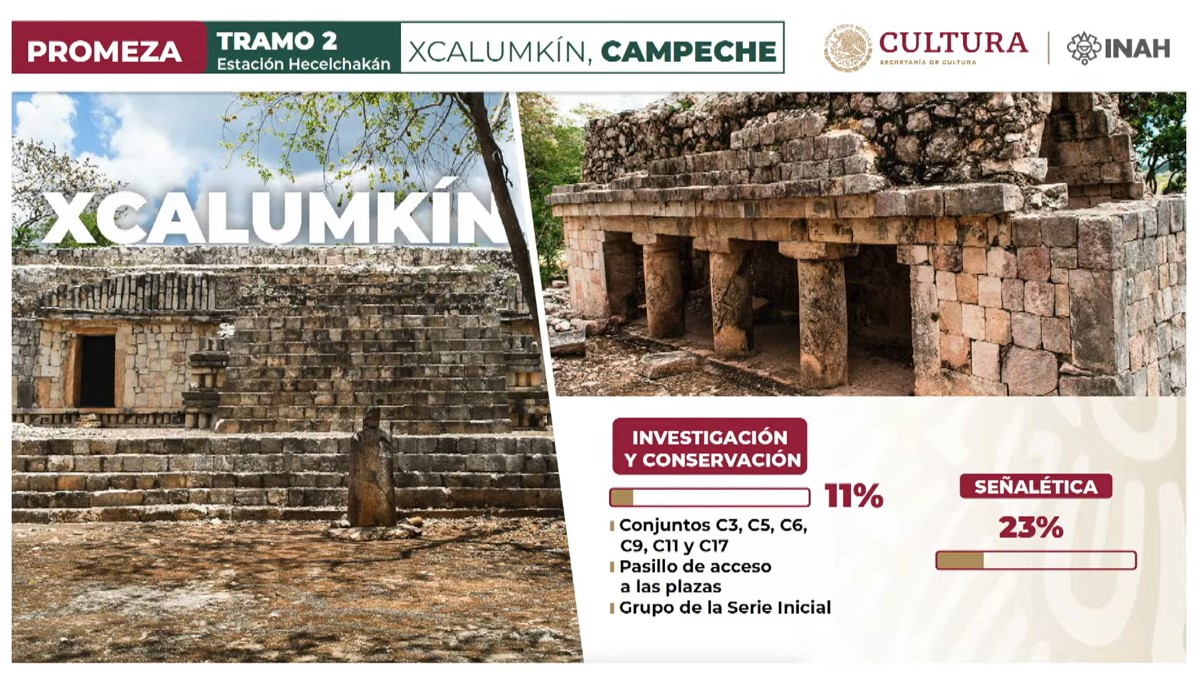 A través del Programa de Mejoramiento de Zonas Arqueológicas (Promeza), el INAH interviene Edzná y Xcalumkín, en Campeche, donde avanzan las tareas de investigación, conservación y señalética, así como la construcción de Centros de Atención a Visitantes (Catvi).
