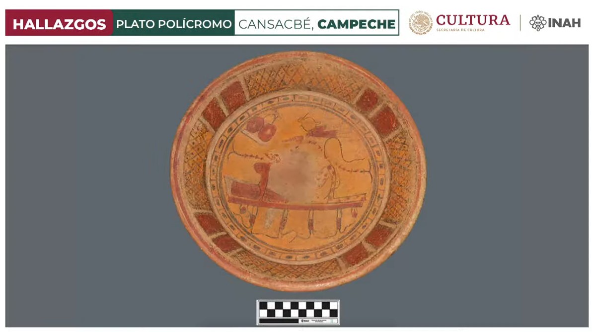 Entre los hallazgos más relevantes destaca un plato polícromo en Cansacbé, Campeche, que se encontraba como ofrenda en el entierro de un personaje de élite. Debido a las condiciones ambientales, estaba cubierto de sales y carbonatos, por lo que fue intervenido en un laboratorio de conservación; se trata de una imagen desgastada de un jaguar rodeado de recuadros que representan caparazones de tortuga.