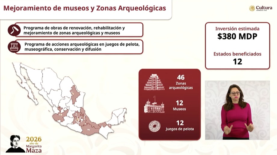 El Programa de Mejoramiento de Museos y Zonas Arqueológicas atenderá 46 zonas arqueológicas, 12 museos y 12 juegos de pelota.
