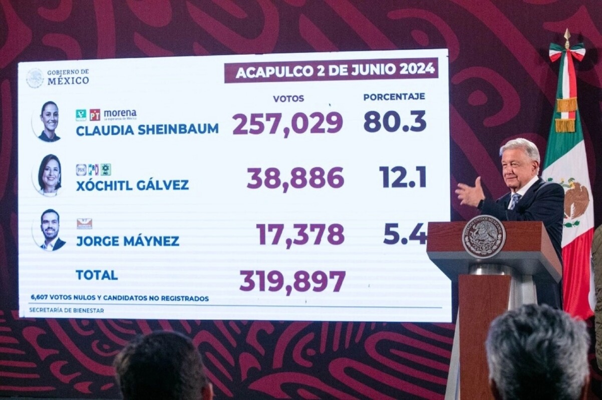 En su conferencia de prensa diaria en Palacio Nacional sostuvo que medios y comentaristas hablaron durante el proceso electoral de que el país está polarizado: “Ahí está la polarización”, dijo al mostrar un mapa que muestra que Claudia Sheinbaum Pardo ganó las elecciones presidenciales en todos los estados del país a excepción de Aguascalientes.