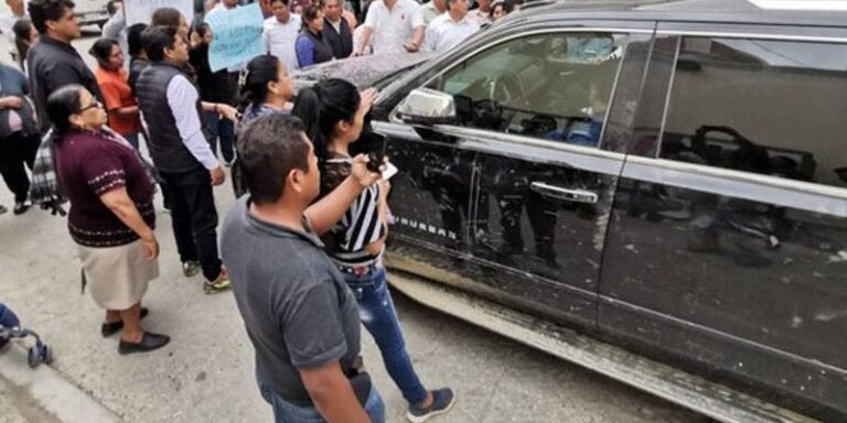 Retienen camioneta de AMLO en Oaxaca.