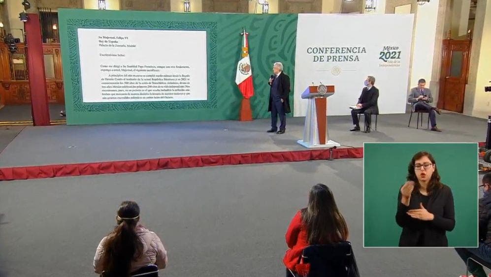 El presidente Andrés Manuel López Obrador dio a conocer la carta enviada al rey de España Felipe VI el 25 de marzo de 2019, en la que solicita que el Estado español pida perdón por los agravios cometidos en la Conquista, e iniciar un proceso de reconciliación rumbo a los 500 años del acontecimiento en Tenochtitlan, además de convocar a un acto conjunto en 2021 en este marco.