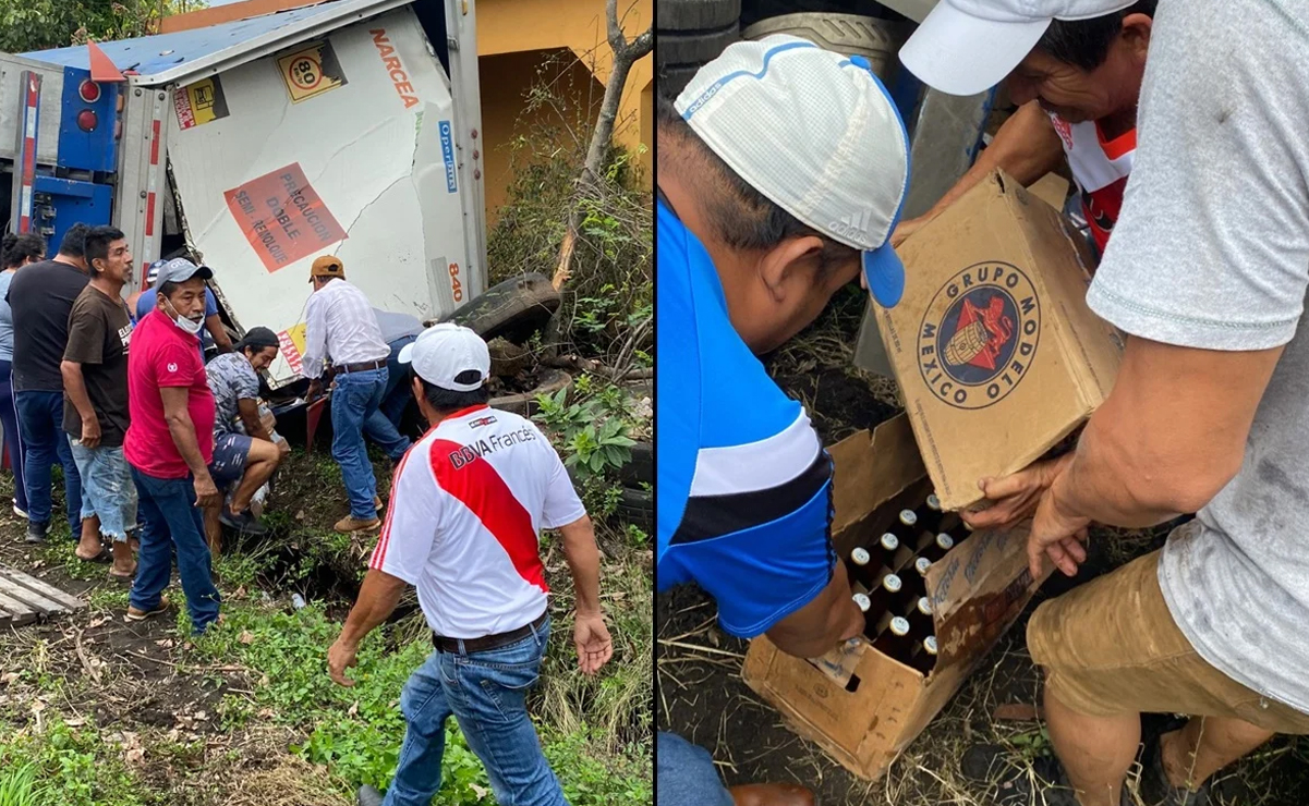 Saquean tráiler tras volcar cargado de cervezas en Veracruz