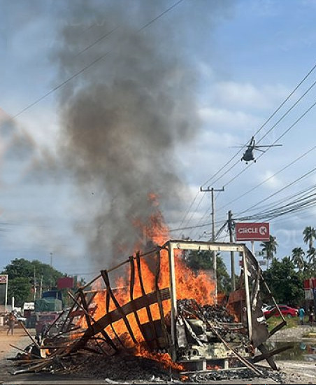 Los violentos bloqueos tuvieron lugar alrededor del mediodía en la carretera Acapulco–Zihuatanejo, a la altura de la colonia Jardín Mangos, en el puerto de Acapulco.