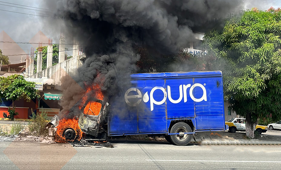 Posteriormente, un grupo de presuntos hombres armados procedieron a rociar con gasolina algunos de los vehículos que se encontraban en la vialidad para después prenderles fuego.