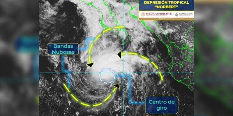 Se forma la depresión tropical “Norbert” amenaza a BCS.- La Comisión Nacional del Agua (Conagua) indicó que en el Océano Pacífico se formó la depresión tropical “Norbert”.