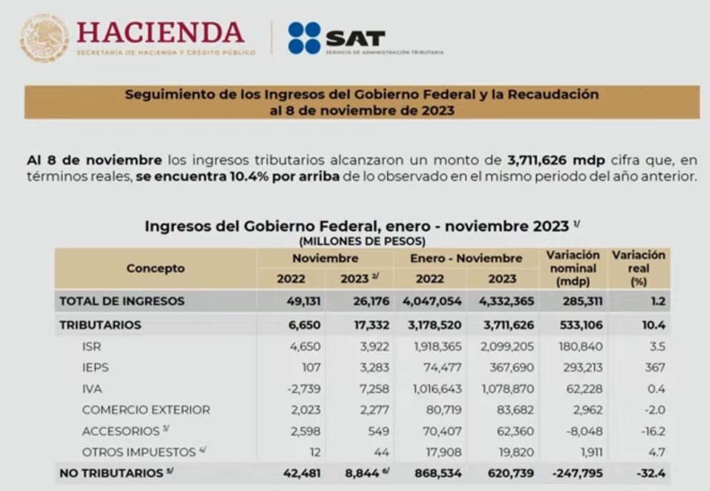 “¿Cuánto hemos nosotros cobrado que antes no recibía la Hacienda Pública? —cuestionó—. En lo que llevamos, creo que lavamos en cerca de 500 mil millones, medio billón de pesos cobrados”.