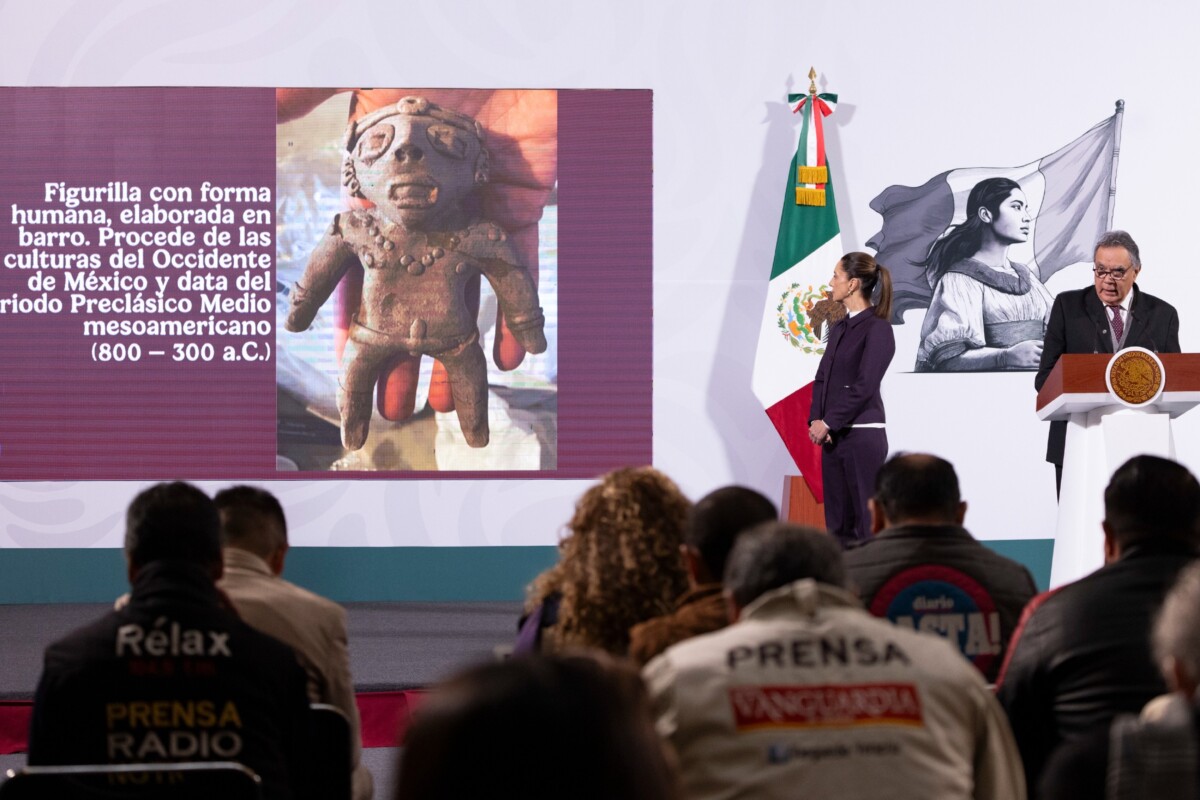 Durante la Mañanera del Pueblo de este viernes, el coordinador nacional de asuntos jurídicos del Instituto Nacional de Antropología e Historia (INAH), Enrique Álvarez Tostado, informó que 14 mil piezas arqueológicas históricas mexicanas han sido recuperadas desde 2018.